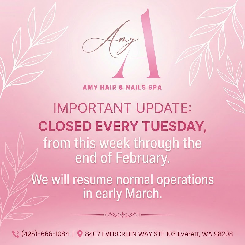 Amy Hair & Nails Spa is a refresh venue located in Everett, WA. Visit their website or call to book.